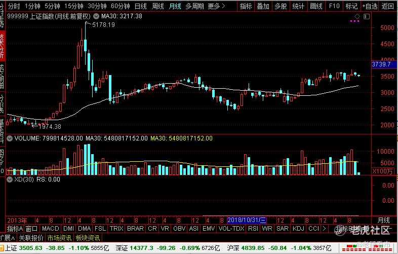 既然是看环境,我们肯定是要看一个中长期的市场走势,就先来看看大盘上证指数月线的走势情况如何,现在算高还是算低,