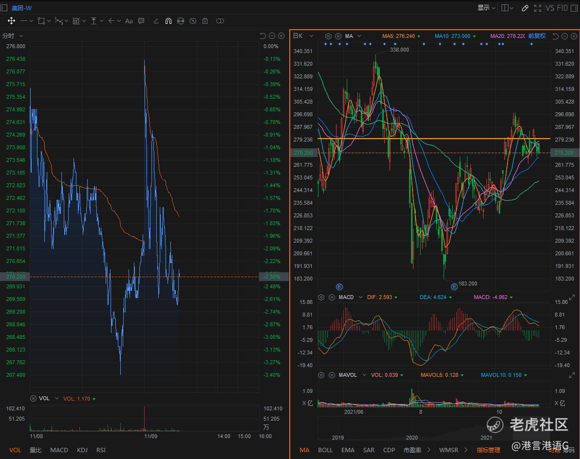 对于美团呢,个人还是昨天的观点,最近应该是一个不错的加仓机会,270左右的博弈可以看出,多方力量还是强于空方的,就等一个契机。$美团-W(03690)$