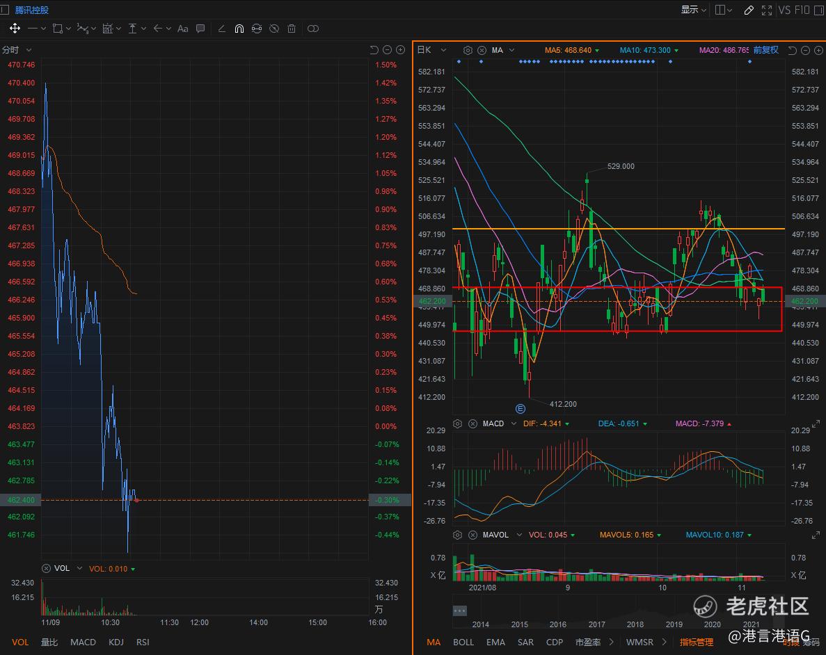 对于腾讯来说个人还是逢低加仓的操作,逻辑很简单,目前价位出于前期盘整区间内,具有一定支撑。$腾讯控股(00700)$