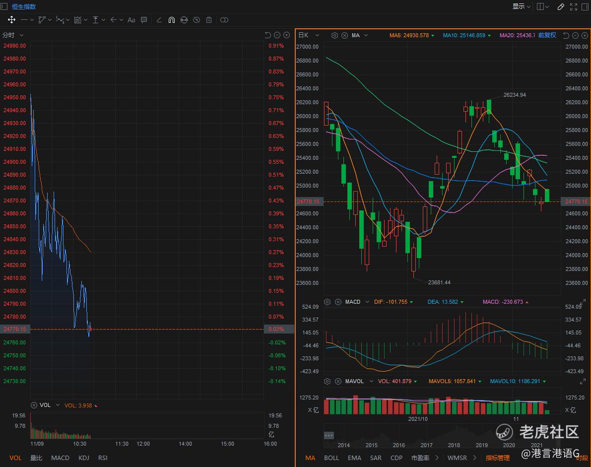 对于恒指个人昨天的观点很明确,个人认为是转灯的一天,包括今天个人认为只要是能够守住24800,那么接下来大概率是会向上的,当然如果守不住的话,可能就会向下延续一天,就这几天观察,恒指的涨跌更多还是在于科技股的走势,昨天恒生科技指数高开低走,今天同样是高开低走,所以恒指好不好看,科技股起很大的作用。