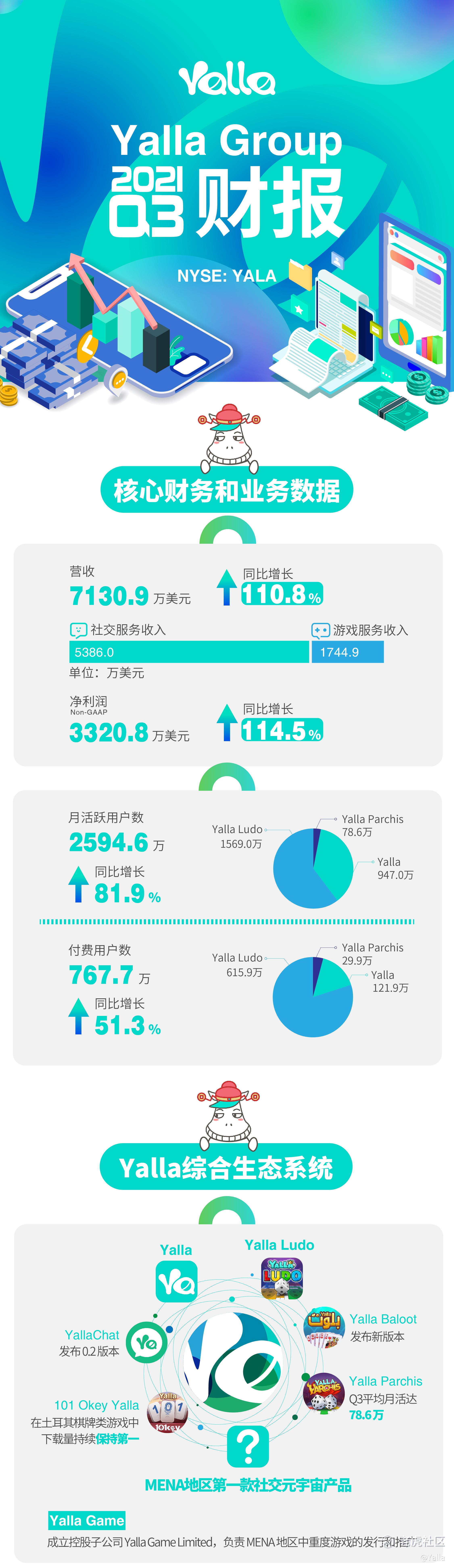 2021年11月9日,阿联酋迪拜——中东地区知名的语音社交平台Yalla的运营主体——Yalla Group Limited(股票代码:YALA)(以下简称”Yalla”或”公司”)公布了截至2021年9月30日的第三季度未经审计的财报。