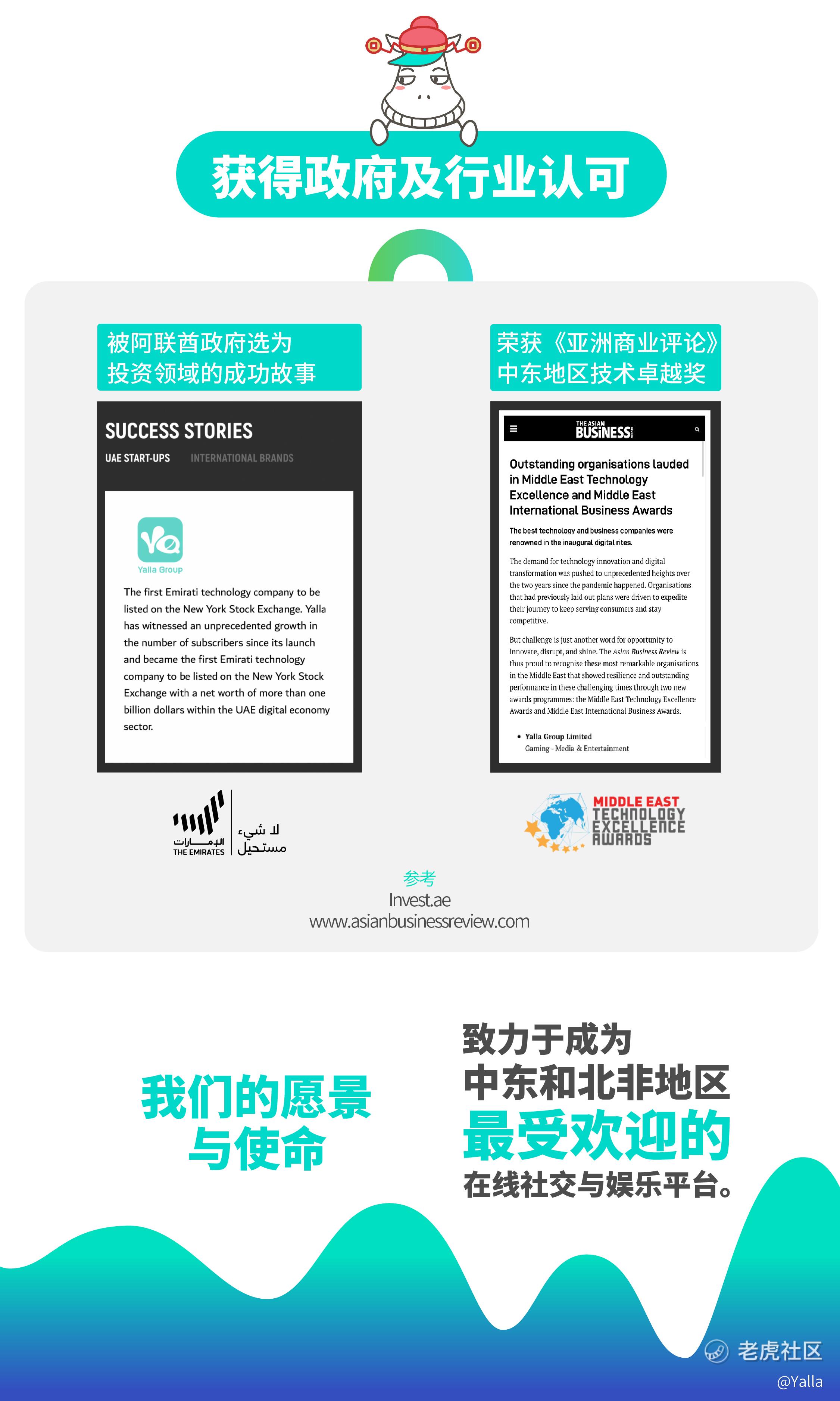 杨涛补充道,“我们最近获得了中东地区技术卓越奖中的游戏——媒体&娱乐奖。这不仅是对Yalla技术实力的肯定,同时也是对我们领先的社交和娱乐生态系统的褒奖。作为一家深深扎根于中东和北非地区的公司,我们将继续开发适合当地用户需求的数字产品,并为当地数字经济的发展做出贡献。”