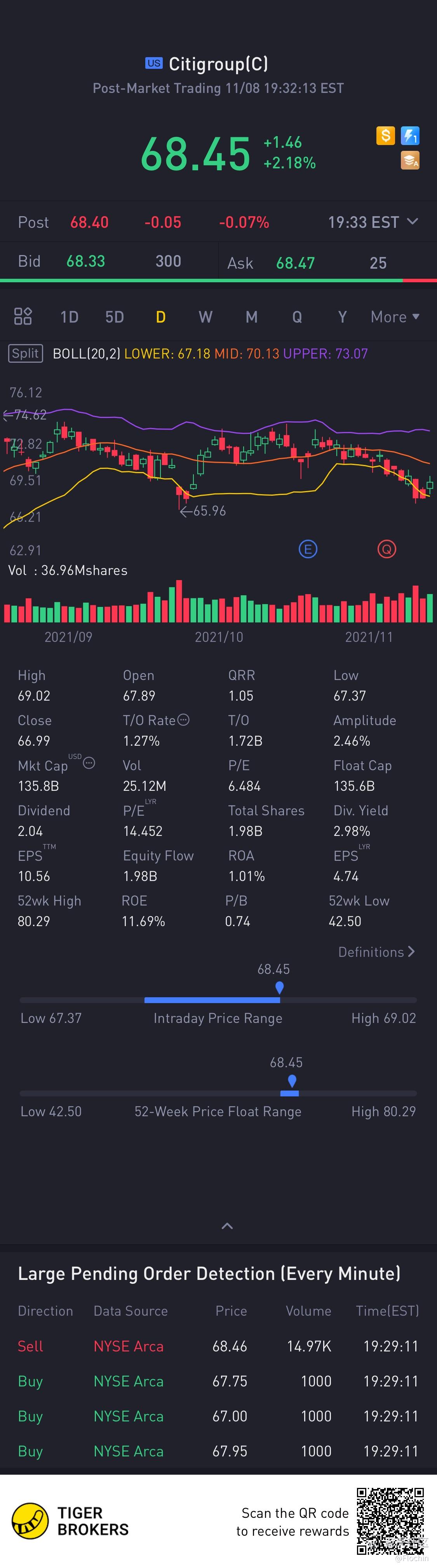 $Citigroup(C)$Finally see a reversal confirmation candlestick. Hopefully it takes off on its uptrend from now on.