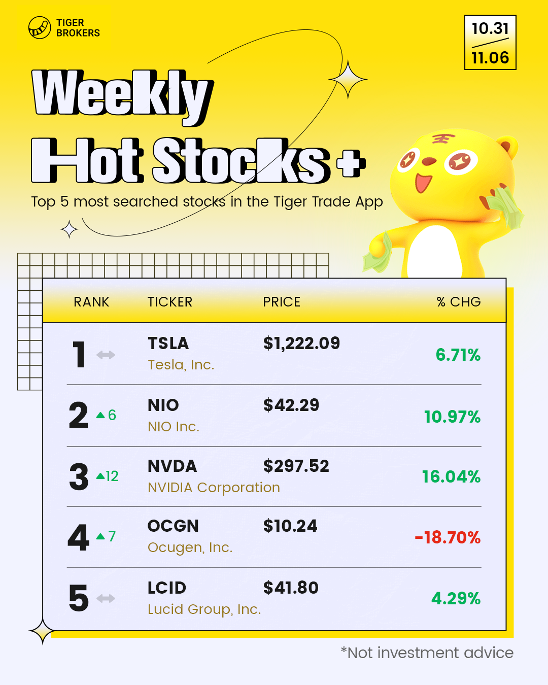 Weekly Hot Stocks: This list shows the hottest 5 stocks last week on Tiger. Are there any stocks you support on the list?✨✨✨