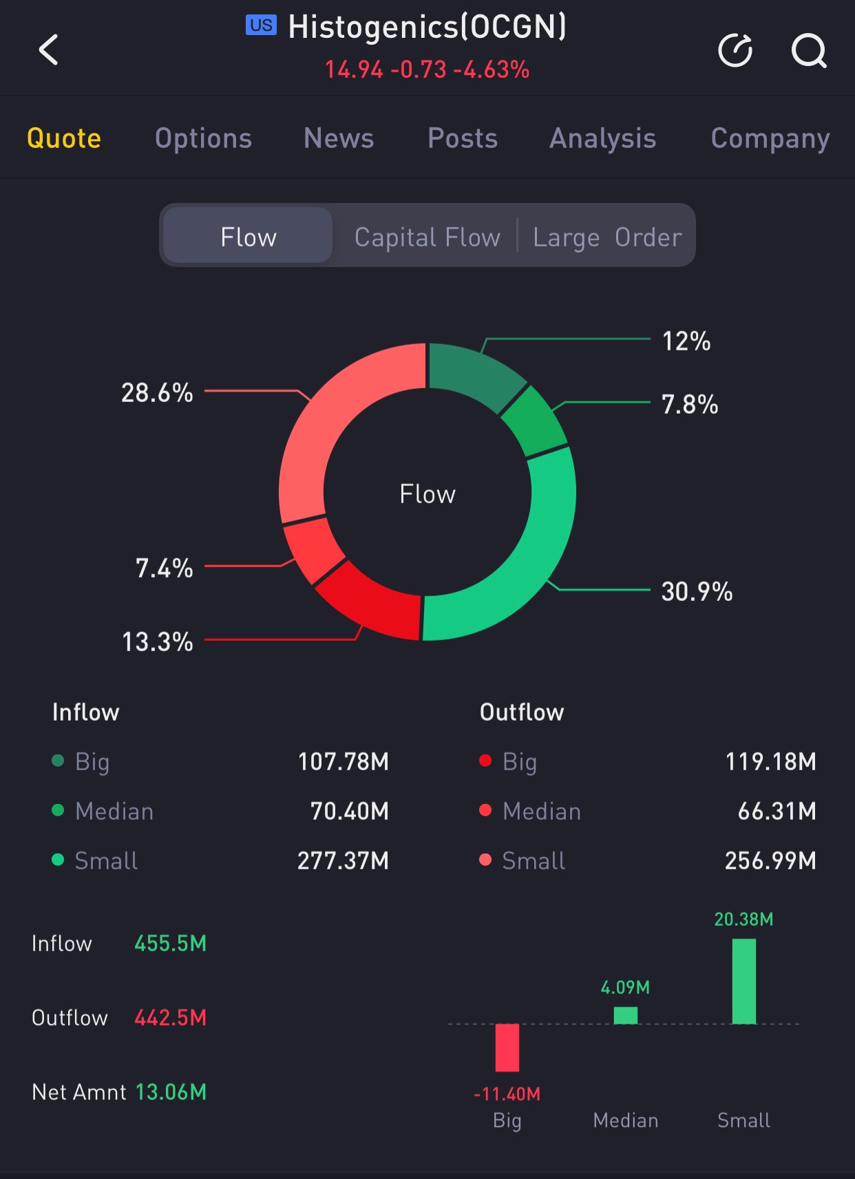 @Mochiba : Inflow is actually more than outflow. Dont be fooled by The manipulation by the market makers. Honestly give ocgn some credit la, its holding up despite the shorting. Trying his best yo