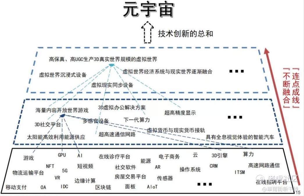 只有通信、互联网、物联网、云、AR/VR、人工智能、区块链、高性能计算等信息技术,乃至材料、能源、生物等更多基础科技领域全面繁荣,我们才能将现实的一切照映进数字世界,创建出真正的“元宇宙”。