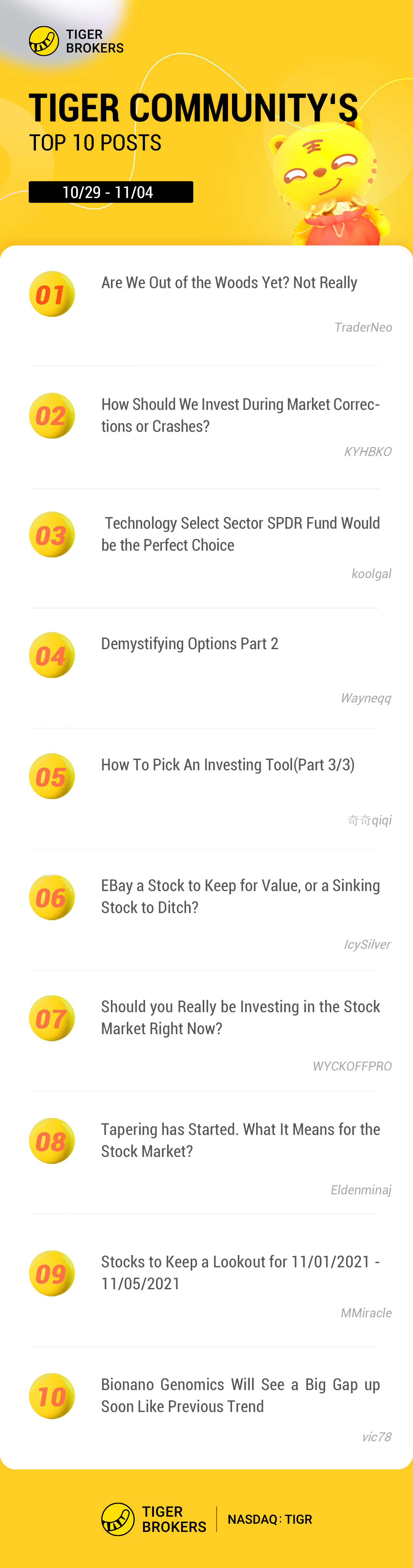 2. Congrats to Tigers @MMiracle @vic78 ! Their posts are the first time selected in the "๐ Posts of the Week". Thanks for sharing your insights on stocks and markets with us.