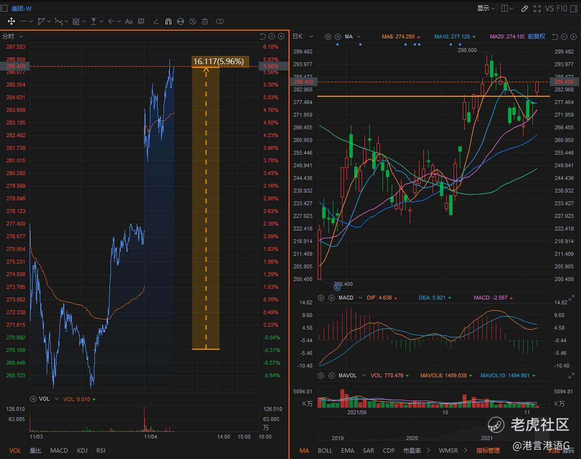 美团昨天发盘中的时候价格是272左右,给出的观点很简单,如果可以再回到270就是机会,那么昨天的机会应该很多,短线的话不想承担回撤的风险,287左右稳赚6%可以走,中线还是看300左右。$美团-W(03690)$