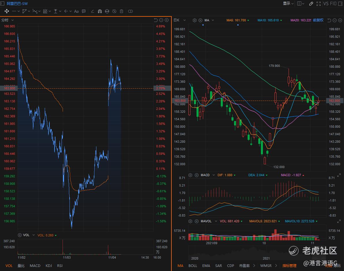 阿里巴巴前天拦着大家不要出手,昨天让大家先观察,今天如果有机会再回到162的话,可适当参与。$阿里巴巴-SW(09988)$