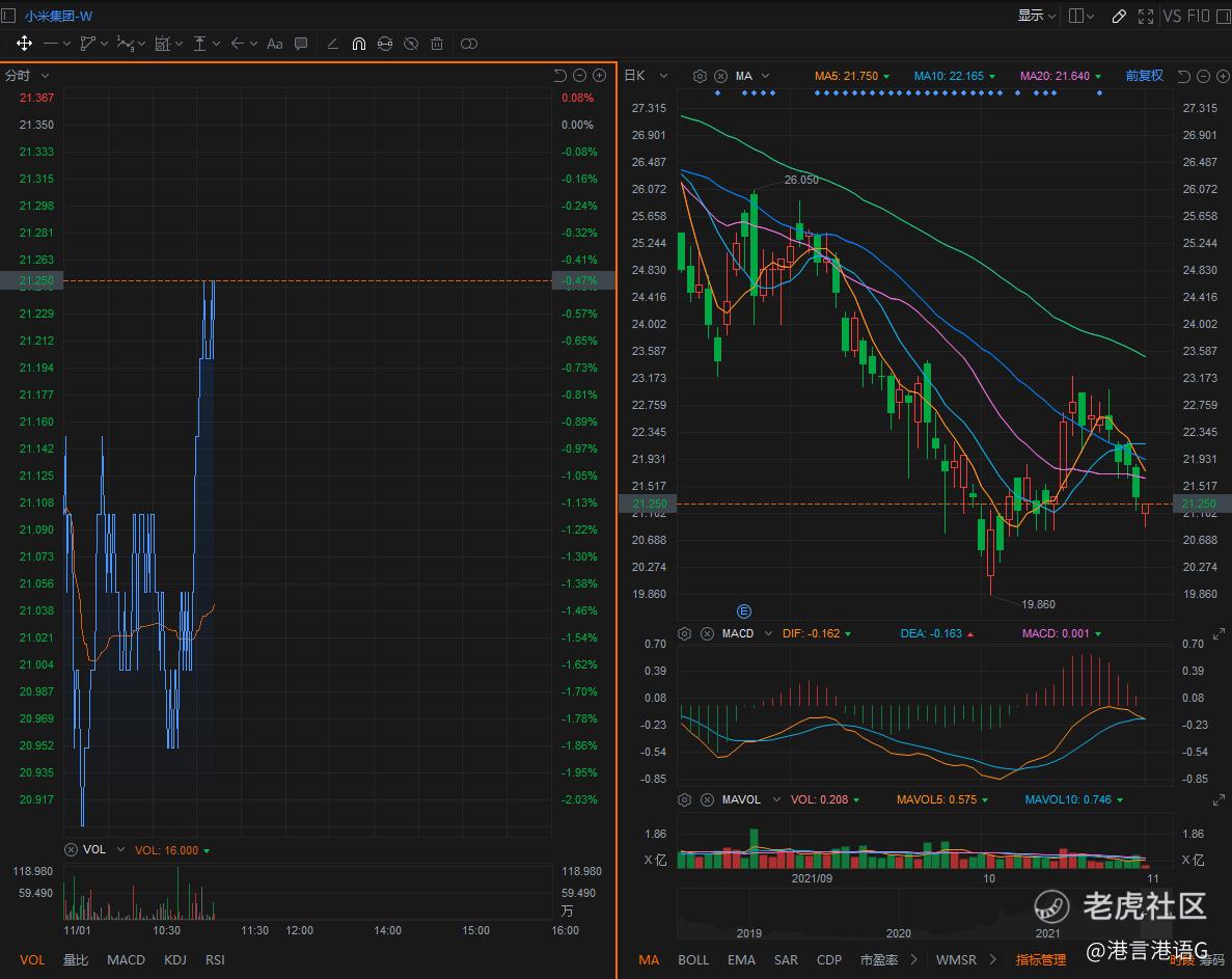 对于小米我对他的看法就是等到大势转灯的时候再考虑他,大势涨的时候他都不一定涨,在这样回调的时候还能指望上他?
