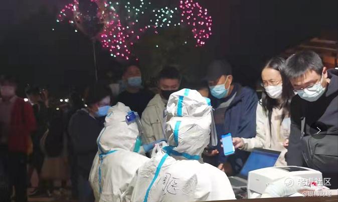 21时25分,迪士尼公园里开始第二场烟花秀表演,柯先生回身拍到了这张照片。此时大门外也有其他游客将这场烟花和防疫人员忙碌的人影记录下来,并被张文宏医生转发在微博中。
