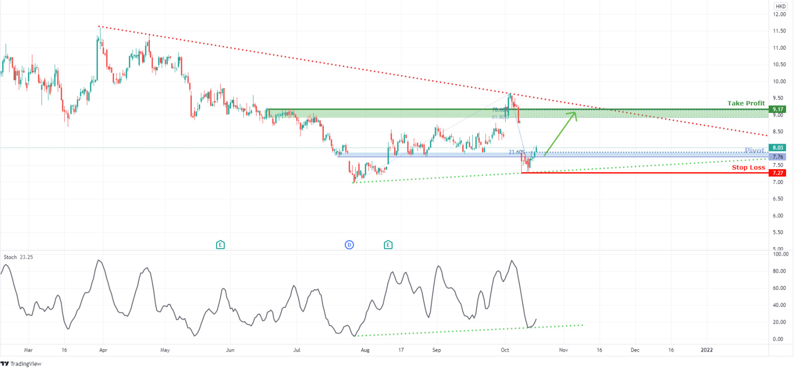 I personally feel it is reacting in a triangle pattern ! [Blush] I feel that price might just push up from the pivot level in line with the 23.6% Fibonacci retracement towards the take profit level in line with the 61.8% Fibonacci projection and 78.6% Fibonacci retracement !  In addition, to further support my bias, we can see that the stochastic %K line touched the ascending support and bounced. [Call] [Call] [Call]