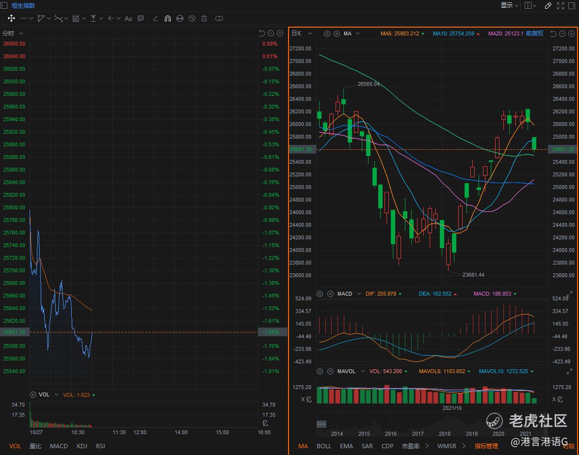 对于今天的下跌,昨天也已经说了,只要是破掉26000就不好了,大家要注意,那如果你昨天没有出掉,盘前也是可以判断出来的,我教给大家的是普通人都能够学会的而且有效的方法,看完昨天的美股和ADR今天开盘前就应该有准备了。炒股大家都是从新手走过来的,根据我自己的经验我不想让大家走我的弯路,见到厉害的人就只会问涨跌,而不是选择学习进步,这样下去可能会赚钱,但是一旦没有人帮助之后,就会原形毕露了。就拿昨天来说,我把接下来涨跌的原因都写了出来,但是给出了观点,26000是一个关键位置,昨天整个下午基本处于26000之下。恒指就目前来看恒指的压力还是很大的,直接上去的可能性不大,所以最近下行回调的走势也是正常,至于什么时候上车还是要等止跌之后再考虑,现在下结论太早了。