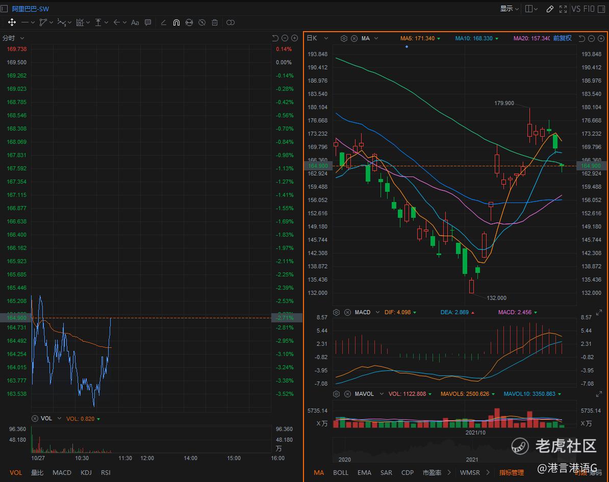 $阿里巴巴-SW(09988)$ 昨天提醒了大家破掉170就要走,昨天给了一下午的机会,如果你没有把握住也是没有办法了。