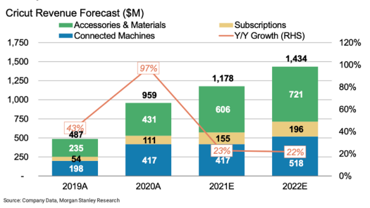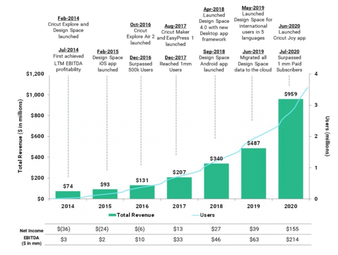 Cricut是一家销售雕刻打印机及耗材的公司,同时提供在线素材订阅服务。