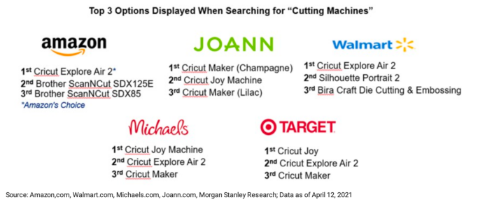 3.多渠道销售搜索cutting machines,第一均为cricut产品,一些渠道例如JOANN和TARGET搜索前三名均被cricut占据