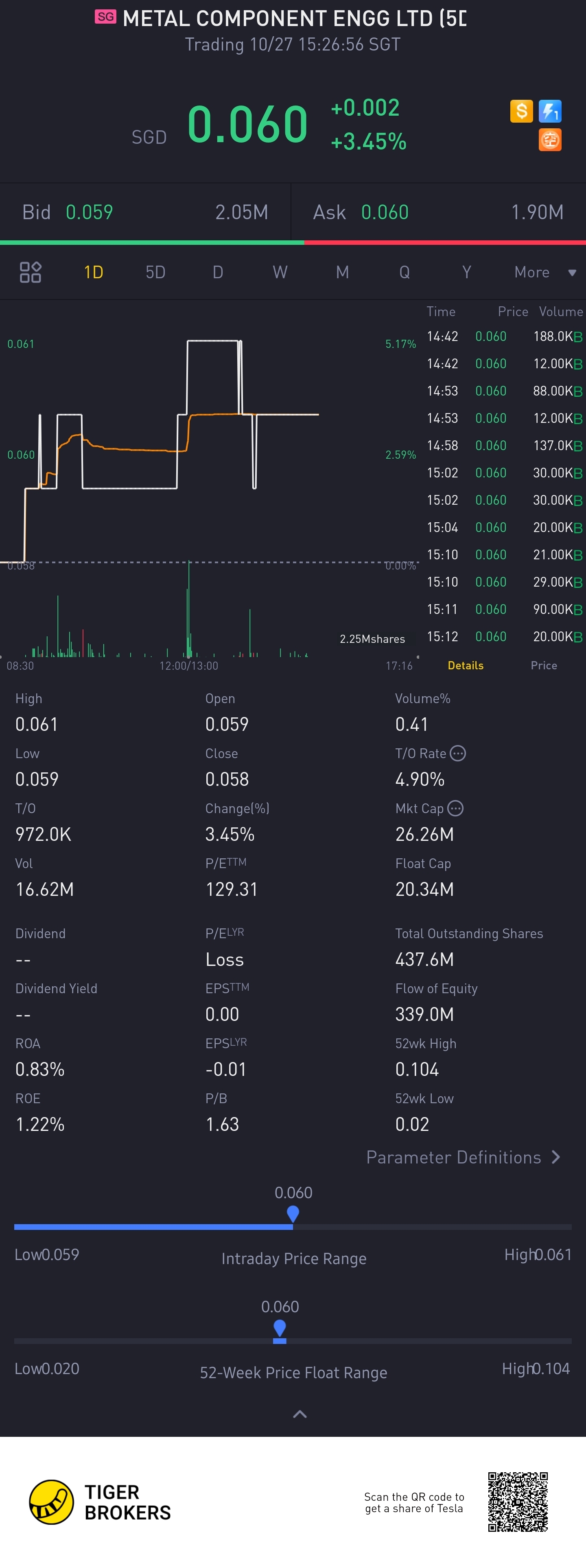 $METAL COMPONENT ENGG LTD(5DX.SI)$