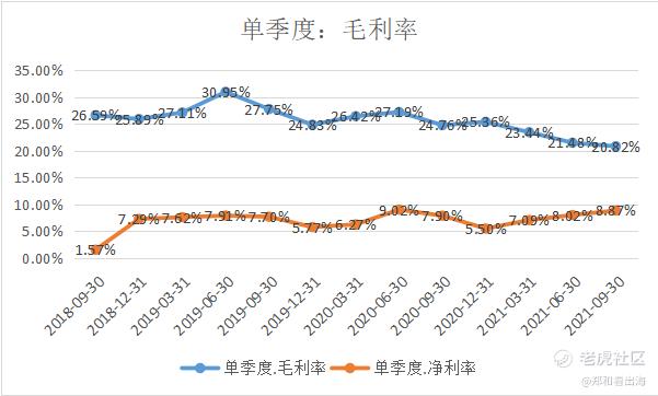- 毛利率还在不断的下降,三季度有放缓趋势,得益于公司费用端控制不错,公司的净利率表现较好。