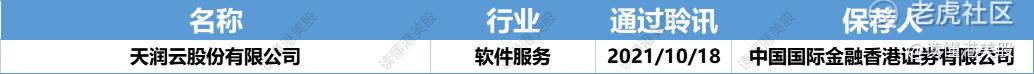 通过聆讯:天润云股份有限公司于昨日通过聆讯,中金为其独家保荐人。
