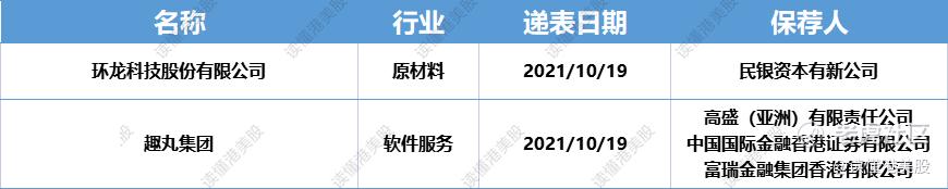 申请递表:昨日,“环龙科技股份有限公司”和“趣丸集团”申请在港交所主板上市。