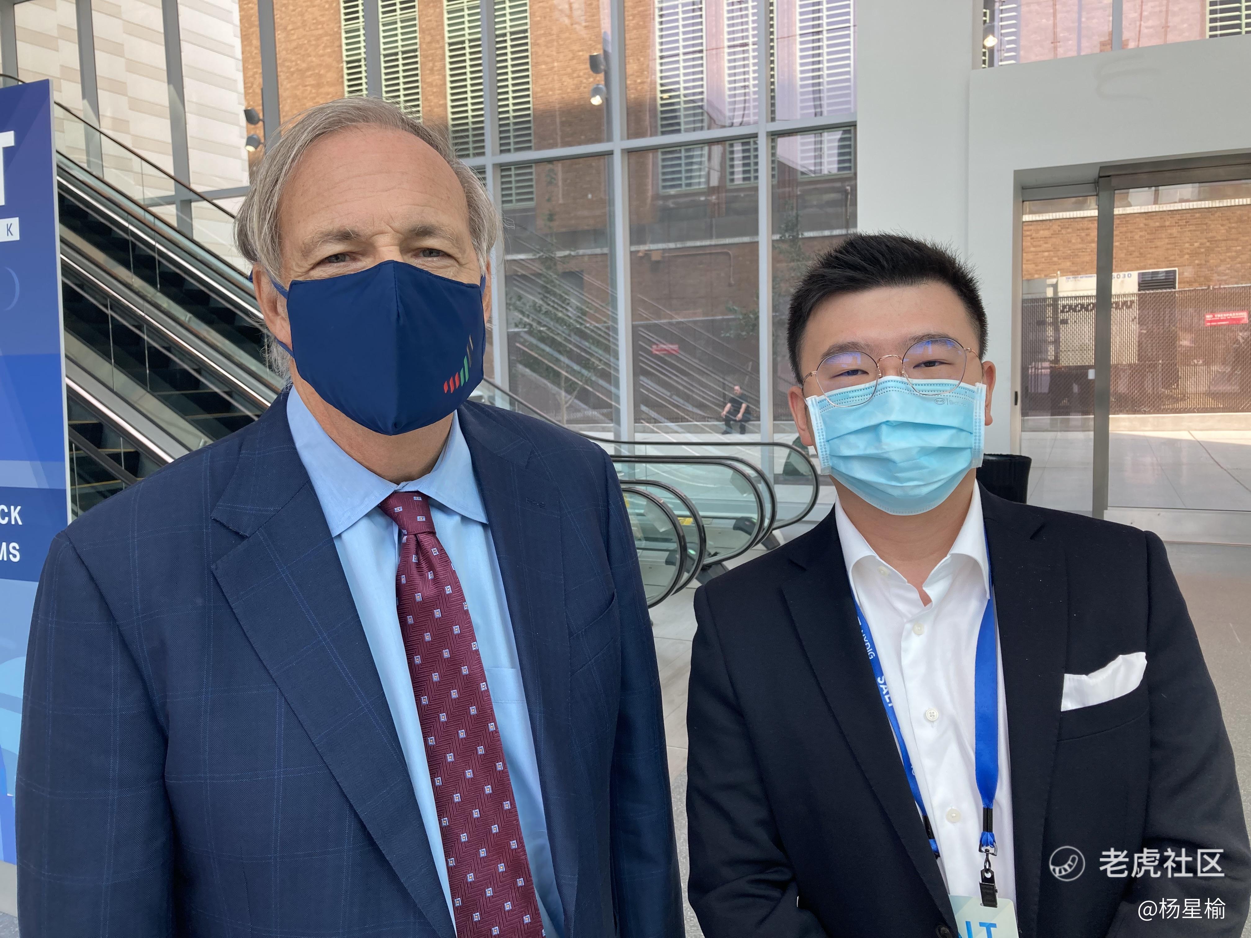 这也是我和Dalio的合照,他还是非常注意防护的。