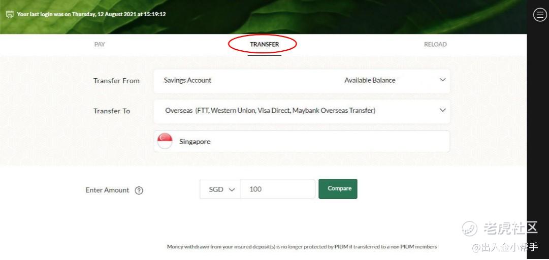 2.Click on 【TRANSFER】 and select 【Transfer To: Overseas】.
