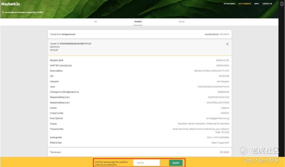 7.Please check and confirm the transaction details. To authorize the transaction, key in the 6-digit TAC sent via SMS to your registered mobile number.