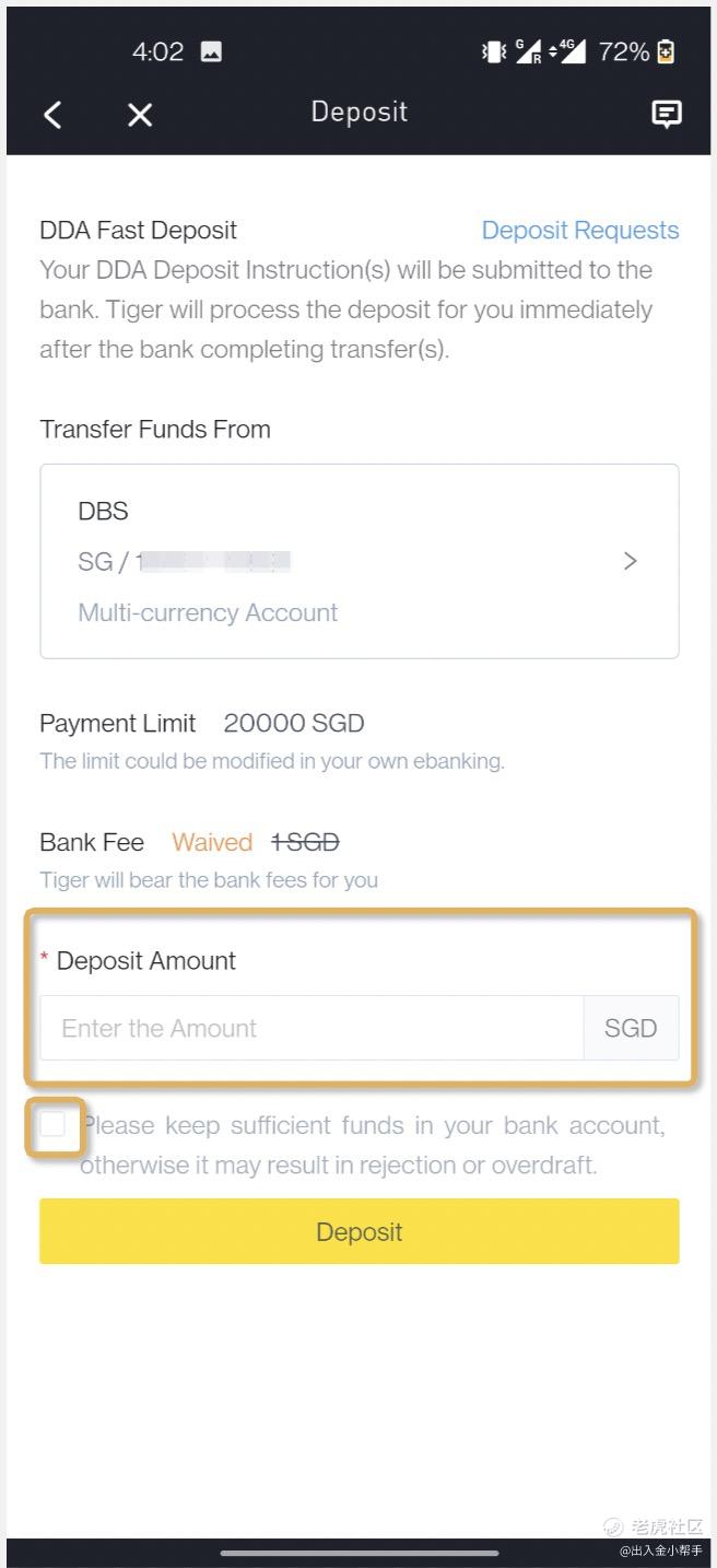 Step 7: Start to deposit by entering your deposit amount (at least SGD10) and your App login password.