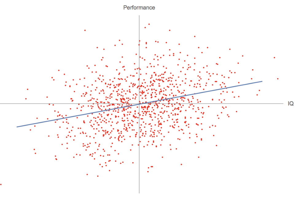 智商和现实世界表现的相关性,via — Nassim Taleb