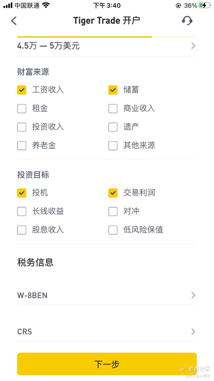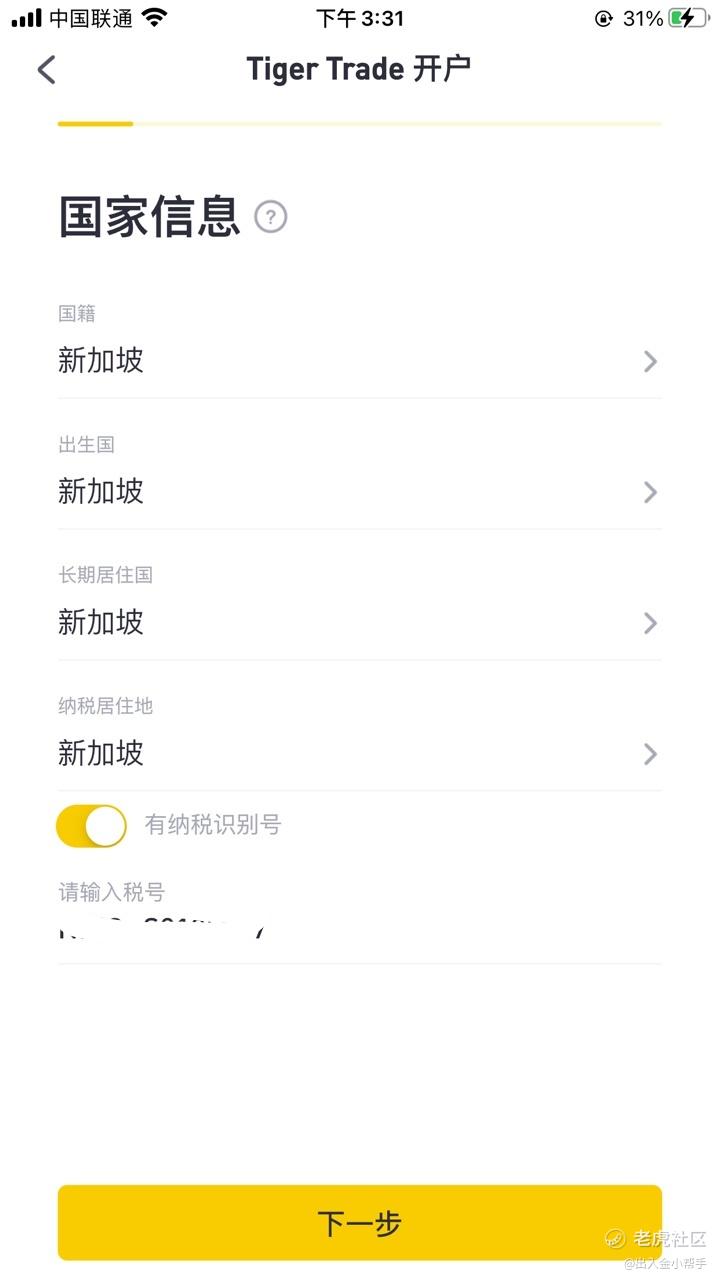 2.点击开户,填写所有国家信息。您如果有税号,请直接输入;如果没有,请写出具体原因。