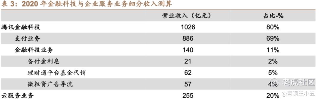 最近阅读了德邦证券研究报告《深度解析腾讯金融科技》,是篇比较优秀的研究报告。该报告里有两个亮点,一是对腾讯金融各业务的商业逻辑进行了详细的阐述,二是对各业务的收入进行了谨慎的测算,很有参考价值。