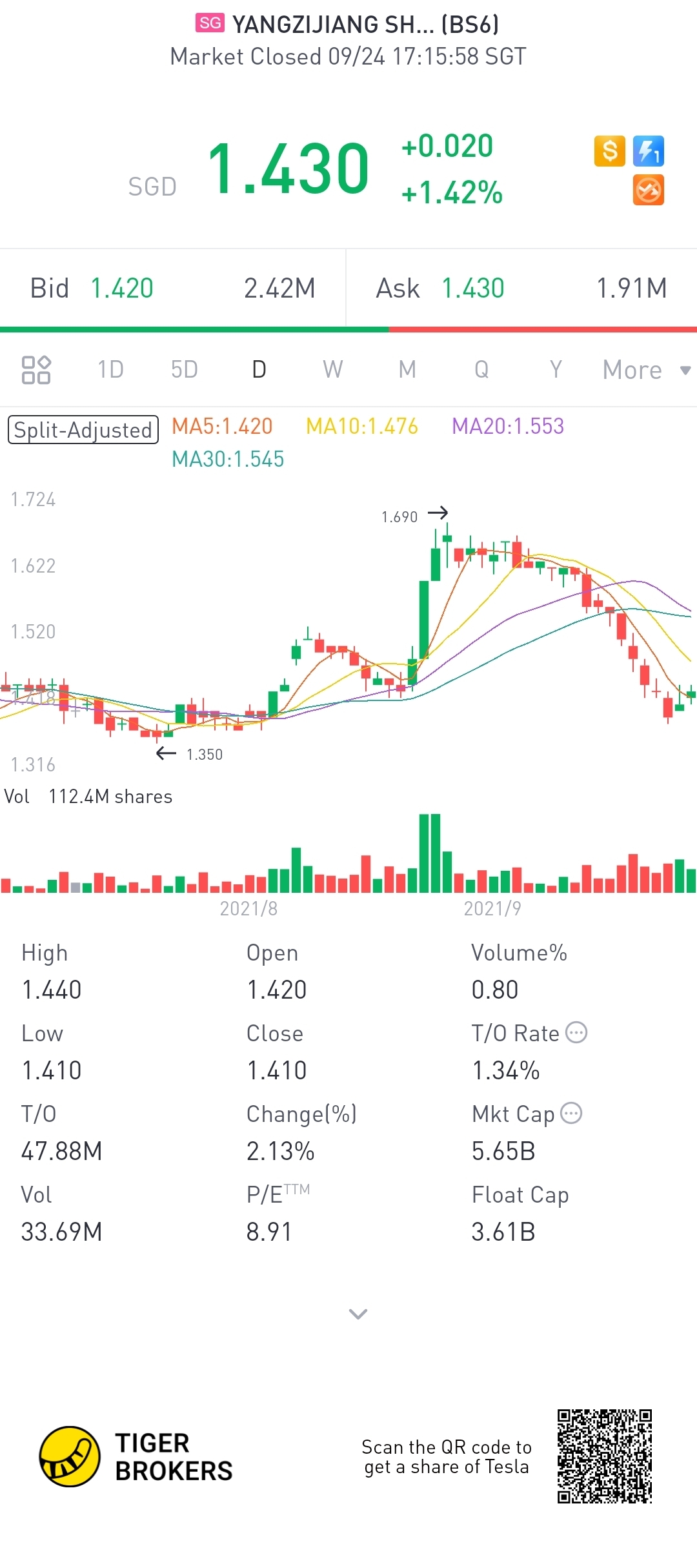 $YANGZIJIANG SHIPBLDG HLDGS LTD(BS6.SI)$