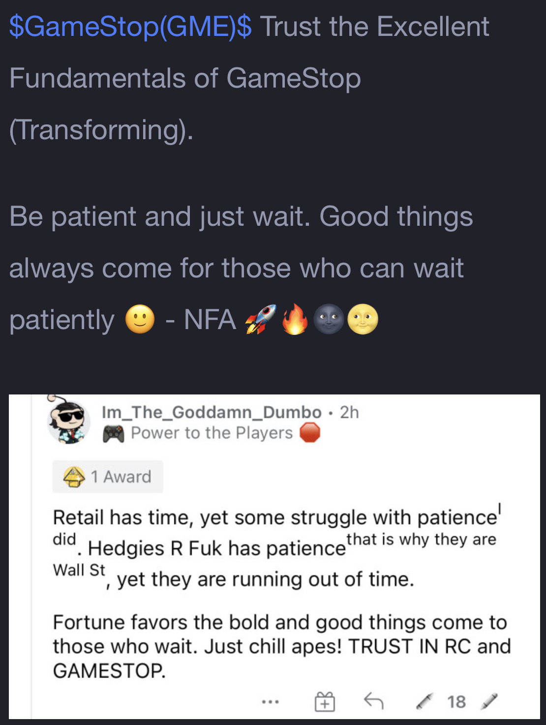 {"i18n":{"language":"zh_CN"},"detailType":1,"isChannel":false,"data":{"magic":2,"id":869079388,"tweetId":"869079388","gmtCreate":1632232140444,"gmtModify":1632801909379,"author":{"id":3569907617359786,"idStr":"3569907617359786","authorId":3569907617359786,"authorIdStr":"3569907617359786","name":"WenRocket","avatar":"https://static.tigerbbs.com/5b473f099da644d2504fade67869053a","vip":1,"userType":1,"introduction":"","boolIsFan":false,"boolIsHead":false,"crmLevel":12,"crmLevelSwitch":0,"individualDisplayBadges":[],"fanSize":24,"starInvestorFlag":false},"themes":[],"images":[{"img":"https://static.tigerbbs.com/184661fa5cb92970b477e22aba7beadf","width":"1110","height":"1474"}],"coverImages":[{"img":"https://static.tigerbbs.com/184661fa5cb92970b477e22aba7beadf","width":"1110","height":"1474"}],"extraTitle":"","html":"<html><head></head><body><p><a href=\"https://laohu8.com/S/GME\">$GameStop(GME)$</a>Reposting this ๐๐๐</p><img src=\"https://static.tigerbbs.com/184661fa5cb92970b477e22aba7beadf\" tg-width=\"1110\" tg-height=\"1474\"></body></html>","htmlText":"<html><head></head><body><p><a href=\"https://laohu8.com/S/GME\">$GameStop(GME)$</a>Reposting this ๐๐๐</p><img src=\"https://static.tigerbbs.com/184661fa5cb92970b477e22aba7beadf\" tg-width=\"1110\" tg-height=\"1474\"></body></html>","text":"$GameStop(GME)$Reposting this ๐๐๐","highlighted":1,"essential":1,"paper":1,"likeSize":4,"commentSize":0,"repostSize":0,"favoriteSize":0,"link":"https://laohu8.com/post/869079388","repostId":0,"isVote":1,"tweetType":1,"viewCount":392,"commentLimit":10,"likeStatus":false,"favoriteStatus":false,"reportStatus":false,"symbols":["GME"],"verified":2,"subType":0,"readableState":1,"langContent":"EN","currentLanguage":"EN","warmUpFlag":false,"orderFlag":false,"shareable":true,"causeOfNotShareable":"","featuresForAnalytics":[],"commentAndTweetFlag":false,"andRepostAutoSelectedFlag":false,"upFlag":false,"length":34,"xxTargetLangEnum":"ORIG"},"commentList":[],"isCommentEnd":true,"isTiger":false,"isWeiXinMini":false,"url":"/m/post/869079388"}