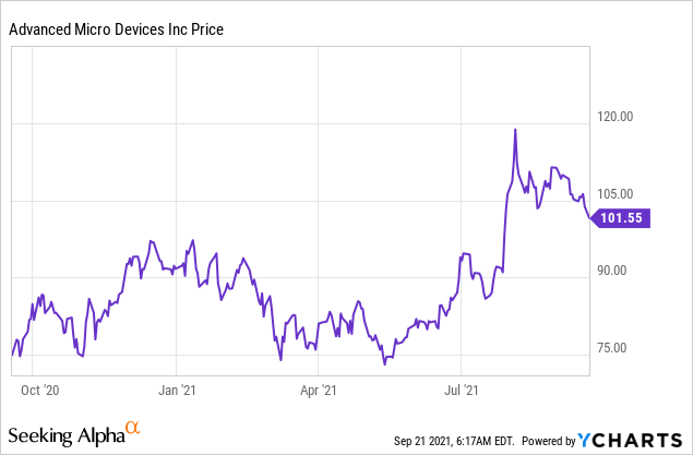 虽然 AMD 的商业增长令人印象深刻,但该股的表现却不尽如人意。显然,在强劲的第二季度盈利将 AMD 推至新高之后,AMD 应该暂停,但市场现在似乎对 AMD 采取了更为谨慎的观望态度。这种观望态度可能与仍在等待监管部门批准的AMD-Xilinx 合并有关。
