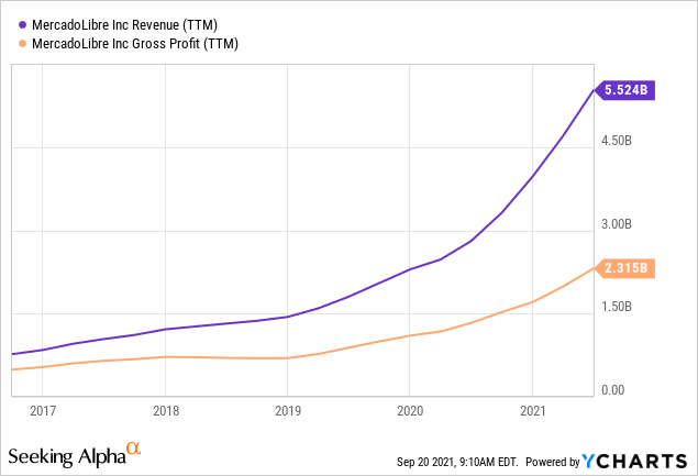 MercadoLibre 牛市论文中最具吸引力的元素之一是其支付解决方案的大规模增长。它的 MercadoPago 产品与 PayPal 非常相似,并且越来越多地在 MELI 生态系统之外使用。
