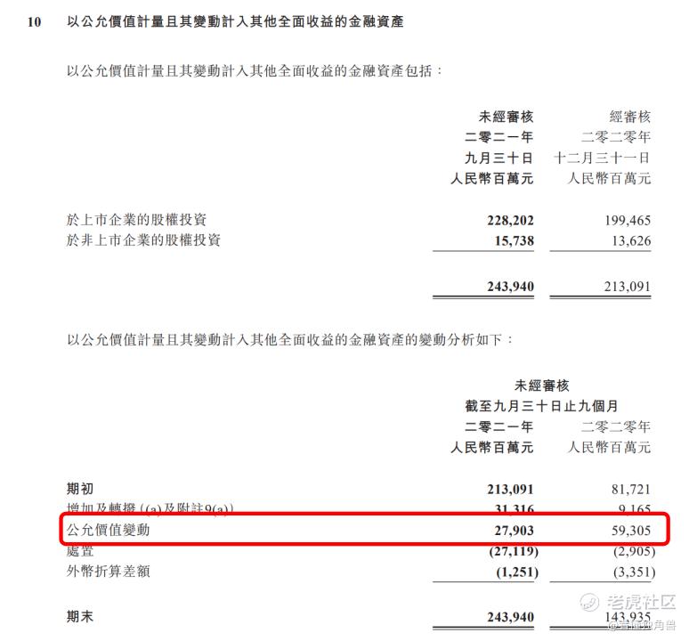 所以,造成腾讯第三季度亏损的,恰恰就是这个“以公允价值计量且其变动计入其他全面收益的金融资产”带来的公允价值波动。