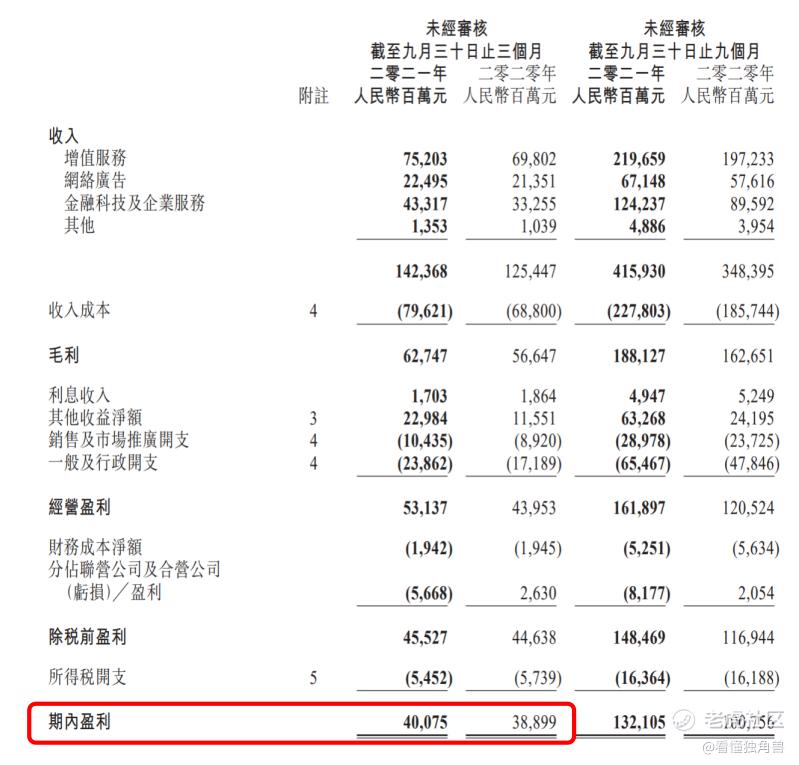作者同时提醒投资者,应该重视本次腾讯单季亏损(这里的亏损以2021年第三季度“期内全面(虧損)╱收益(除稅淨額)”为标准)的警示。重视腾讯投资业务对其基础业务带来的巨大潜在威胁。
