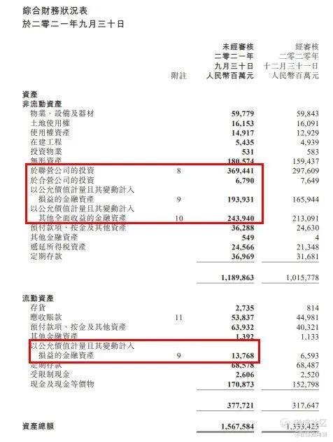 如果我们把红框中的这些投资科目金额相加,再除以资产总额,就会发现腾讯超过52.8%的资产是投资业务的资产。也就是说,腾讯最大的资产是投资类资产。所以,实际上腾讯的最大业务是投资。而从本次腾讯第三季度实际亏损来看,投资业务也足以对腾讯基础的互联网业务价值造成实质性的影响。如果在发生系统性风险时,腾讯所投资的这些所谓科技型公司(本来公允价值泡沫就不小),就会出现巨额亏损。因此,我们应该重视本次腾讯单季亏损的警示。重视腾讯投资业务对其基础业务带来的巨大潜在威胁。