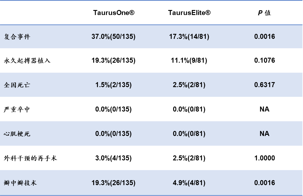 TaurusElite®临床注册数据(30天复合事件发生率)