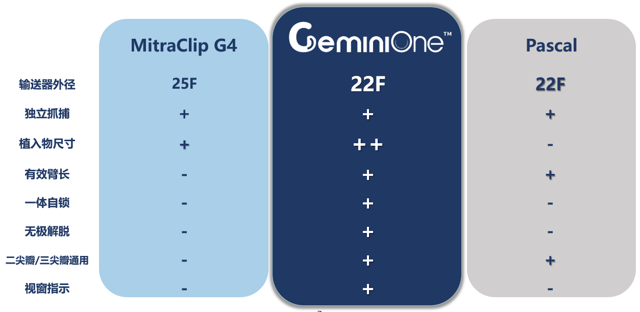 二尖瓣缘对缘修复技术在全球已经有13万例以上的临床案例,充分证明了其安全、有效及持久性,未来亦可应用到三尖瓣修复领域。GeminiOne经导管瓣膜夹系统是沛嘉医疗自主研发的一款瓣膜缘对缘修复产品,各维度性能都优于同类上市或在研产品。GeminiOne拥有独特的机械结构设计,使其在临床应用中可以实现更大夹合臂长的同时保持更小植入物尺寸。瓣膜夹具备瓣叶独立抓捕功能,术中过程一体自锁,无需繁杂的锁定解锁操作,无极解脱功能可以实现多角度解脱,使其可以应对更为广泛的病变解剖结构。GeminiOne的输送系统外径小,一种设计可以同时应对二尖瓣或三尖瓣病变,极简化的操作能够大幅提高手术效率,并为纯超声引导的手术流程特别设计。