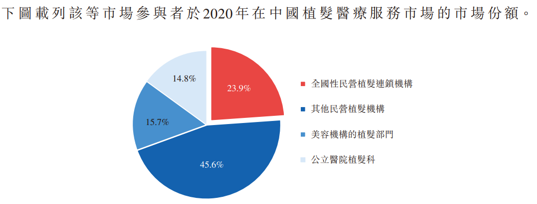 但是由于植发手术的风险低、对医生资质的要求也明显低于眼科、骨科等赛道,因此国内植发医疗赛道的参与者分散且众多,公立医院、民营医疗机构、美容机构等等,均具备实施植发手术的资质,但其中公立医院是患者植发意愿最强的选择,但碍于公立医院的人员、设备及机构属性,从而导致公立医院难以满足中国患者庞大且快速增长的植发需求。在此背景下,民营医疗机构凭借其丰富的植发手术经验,更有能力满足市场上未被满足的医疗需求,因而拥有巨大的增长潜力。此外,与独立的植发机构相比,植发连锁机构更能够为其植发医疗服务提供质量保证,因此将受到潜在患者的青睞。