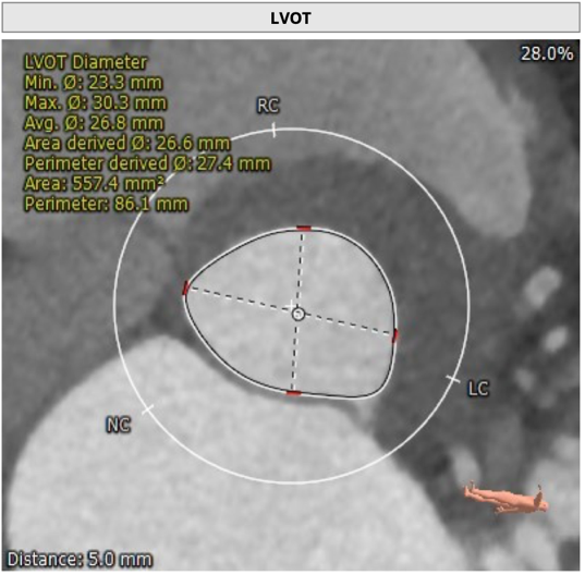 LVOT 周长 86.1mm,周长径27.4mm;