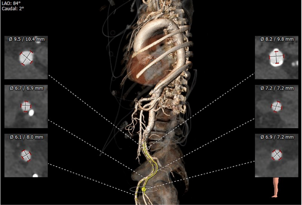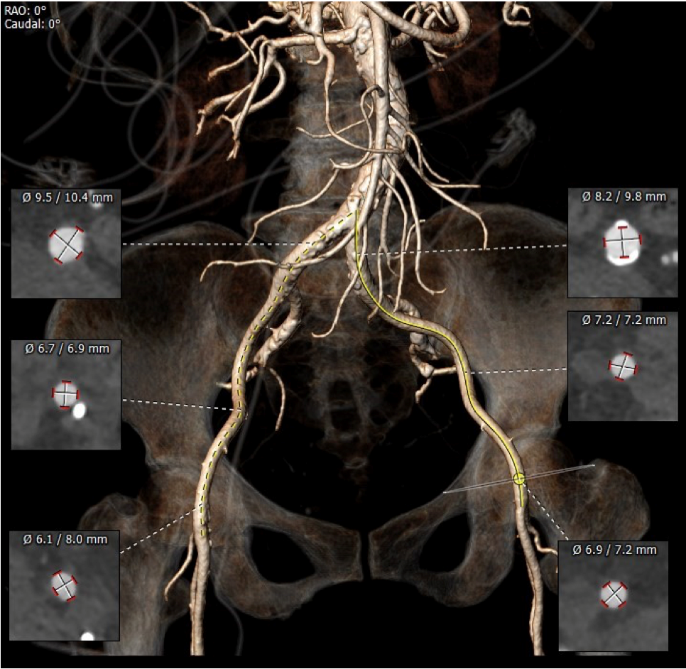 入路血管少量钙化无其他病变,双侧血管内径良好,整体入路血管条件良好。