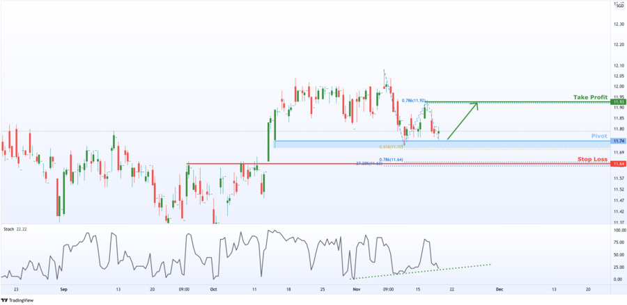 Hey all ! Check out $OVERSEA-CHINESE BANKING CORP(O39.SI)$ !! I see a potential short term bullish bounce from the pivot level in line with 61.8% Fibonacci projection towards take profit level in line with 78.6% Fibonacci projection. My short-term bullish bias is further supported by stochastic indicator where the %K line is abiding to the ascending trendline support.[Cool] [Grin]