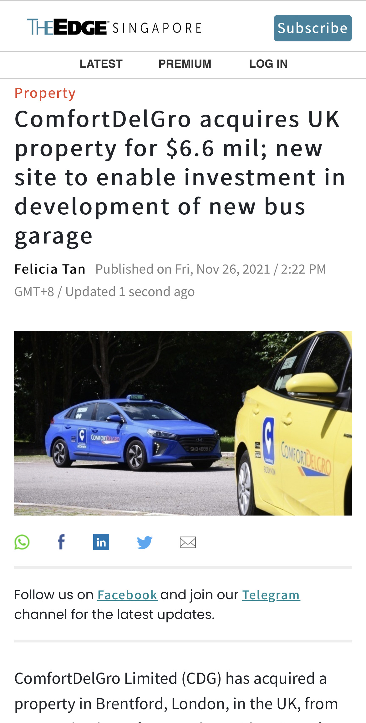 ComfortDelGro pivoting/expanding to infrastructure/maintenance.