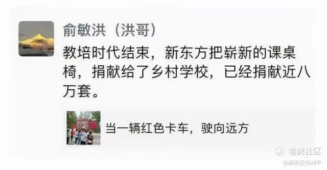 11月4日,俞敏洪在朋友圈宣布“教培时代结束”,并透露了新东方此前教培业务时期部分资产的处置方法,“把崭新的课桌椅,捐给了乡村学校,已经捐献近八万套。”