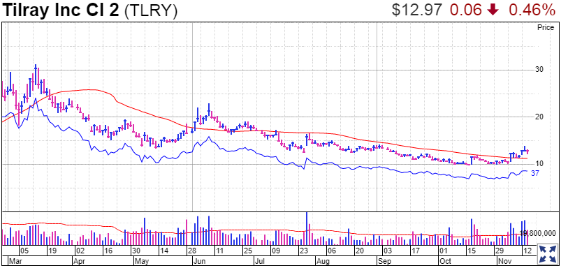 在宣布**将大麻合法化的新法案后,昨天Tilray股票是少数上涨的大麻股票之一。