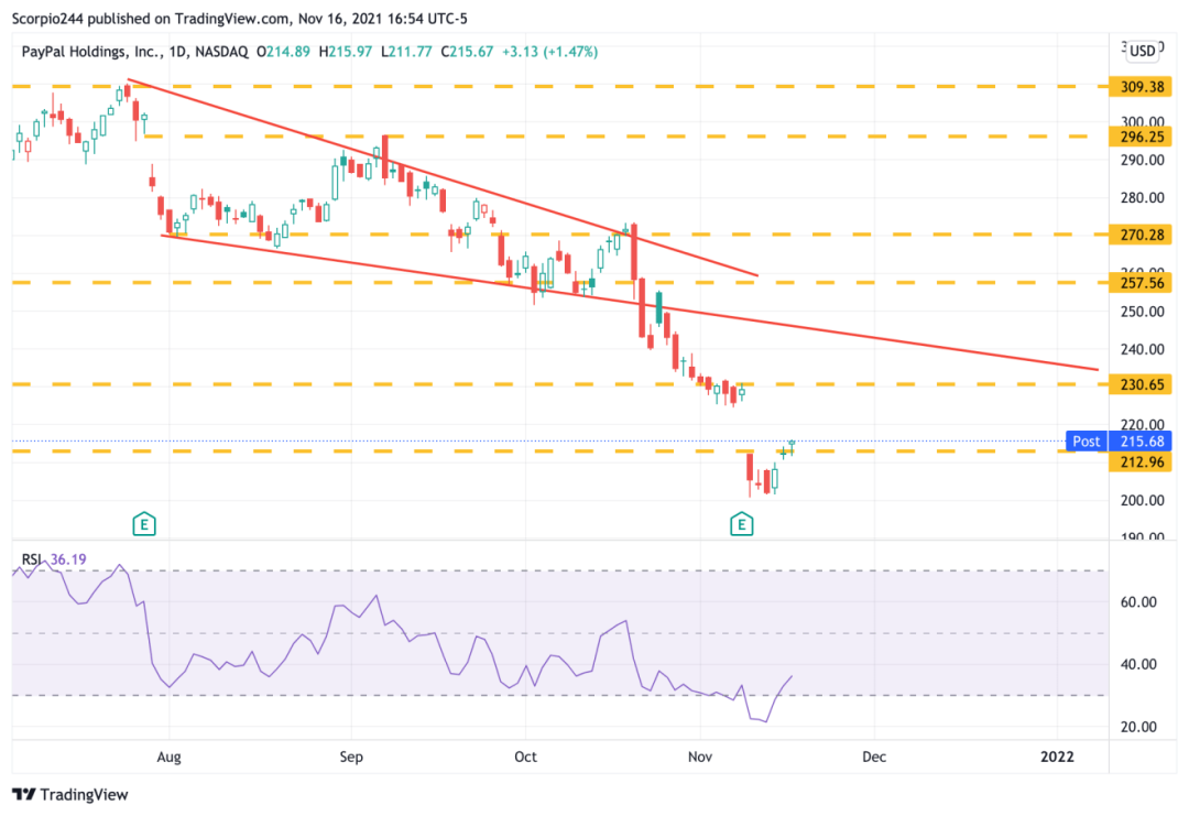 PayPal公司的股价今天上涨,看起来开始填补缺口。