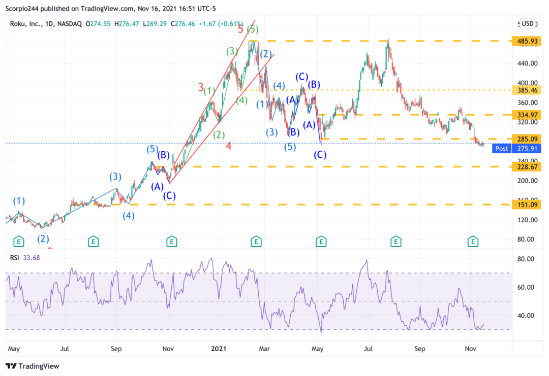 Roku公司的图表看起来无法让人兴奋。虽然该公司股票的相对强弱指数RSI维持在30附近,不过在长期下滑的股价出现短期的反弹之前可能会先出现下跌。Roku公司的股价跌至228美元一线可能导致该股在短期内出现不错的反弹走势。