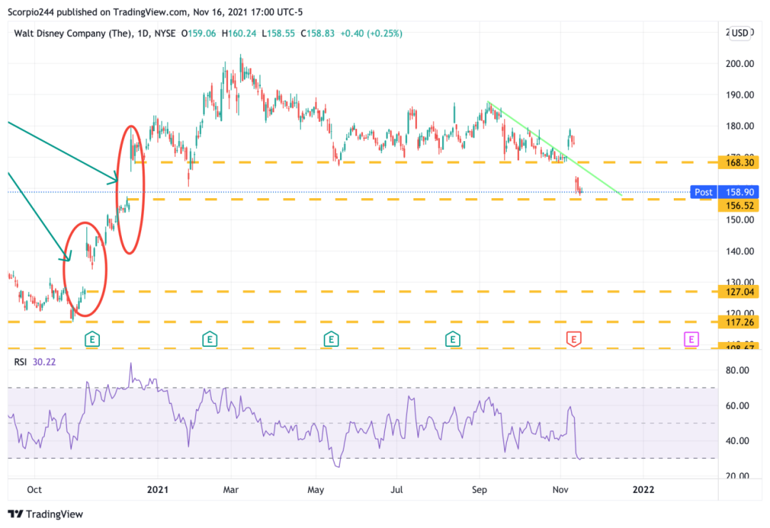以上的信息足以让我确信我们能够在短期内观察到迪斯尼公司的股价反弹至168美元至170美元的区间。
